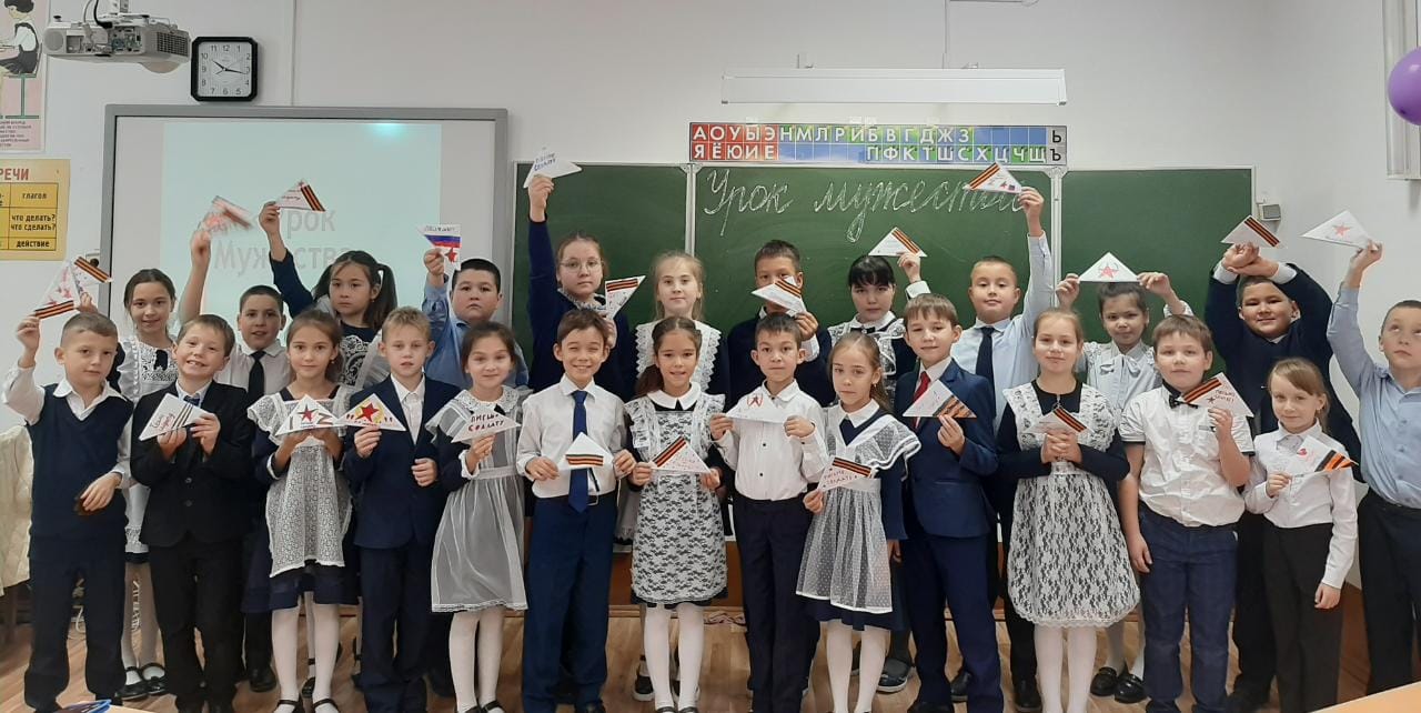 Главной темой этого урока были патриотизм, преданность своей Родине, воспитание мужества и отваги подрастающего поколения. Школьникам рассказали о ратных подвигах российских военных, примерах мужества и самопожертвования различных поколений защитников Родины — от участников Великой Отечественной до сегодняшних героев специальной военной операции.