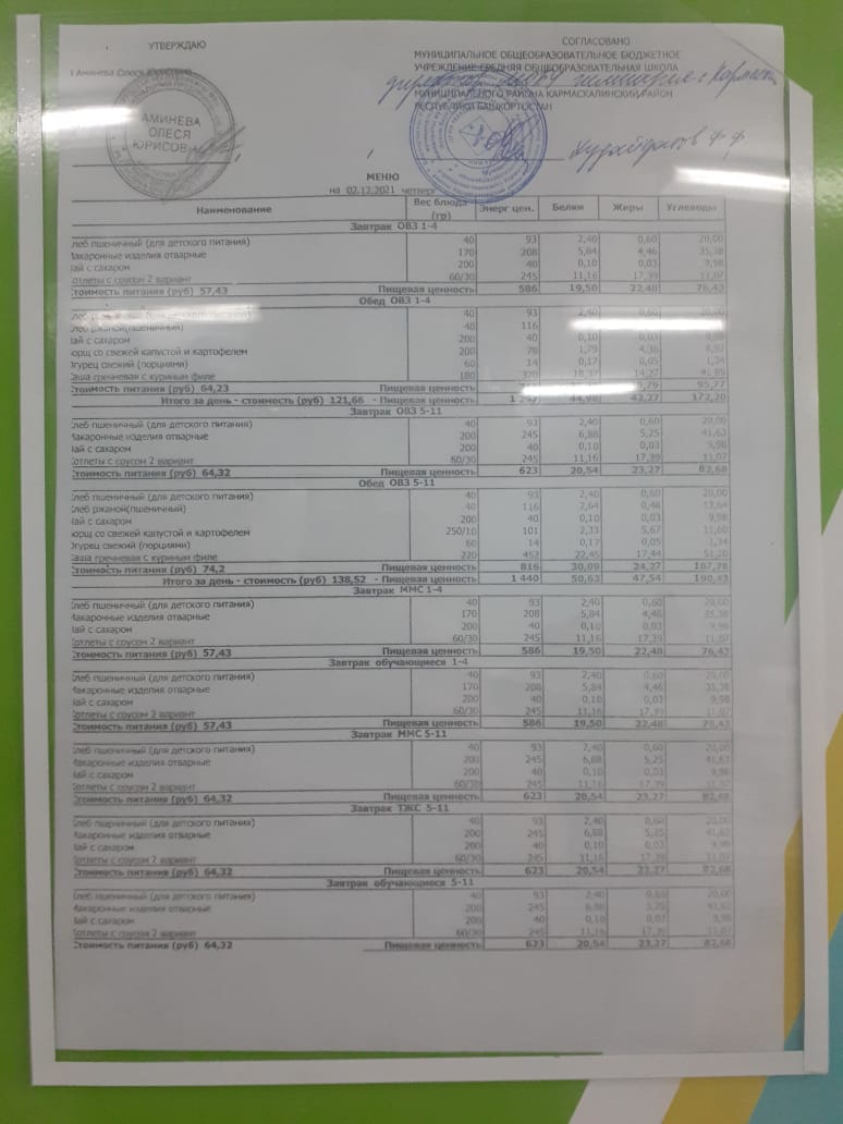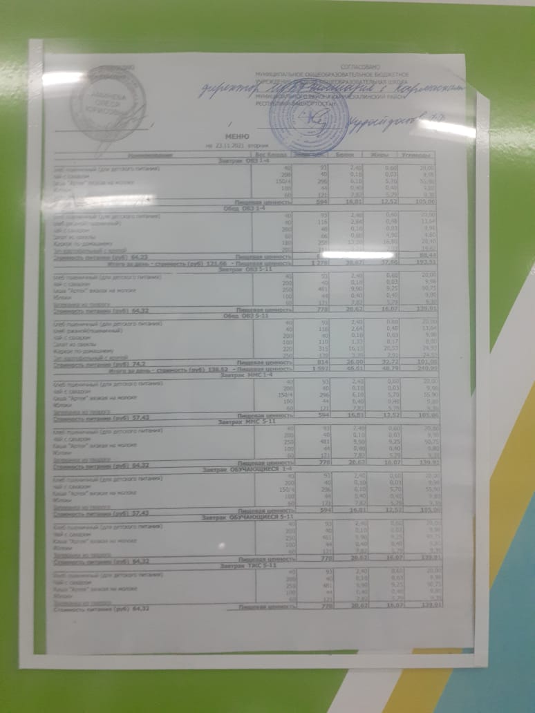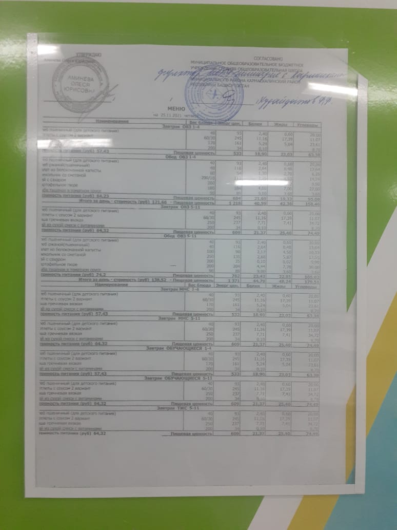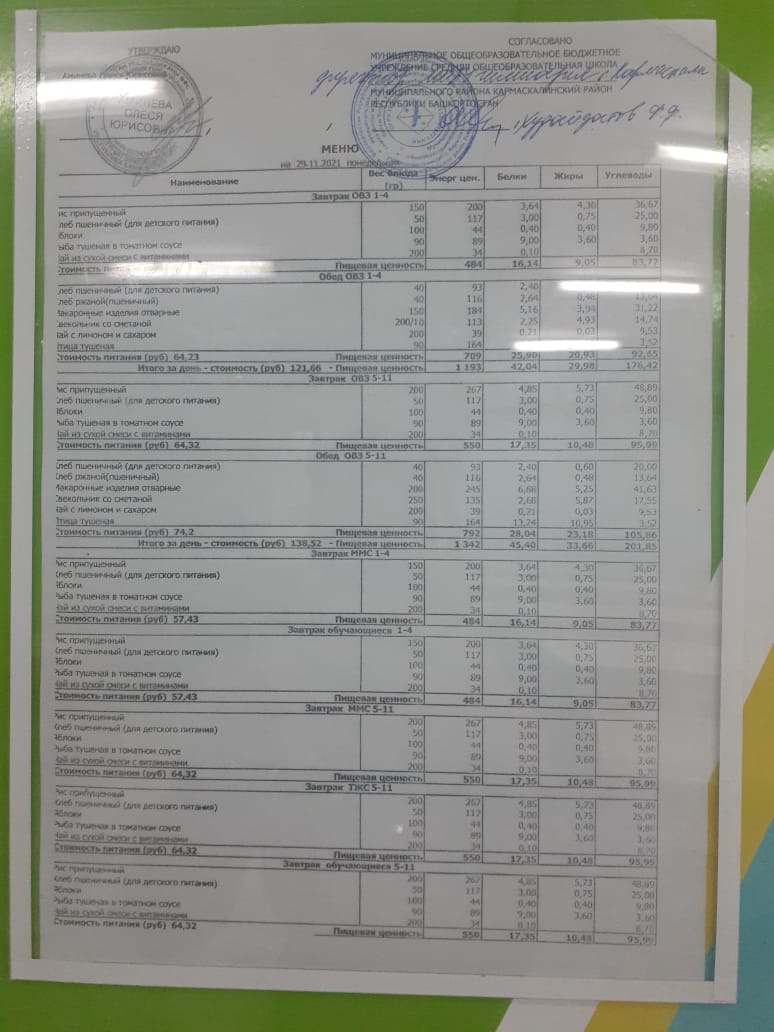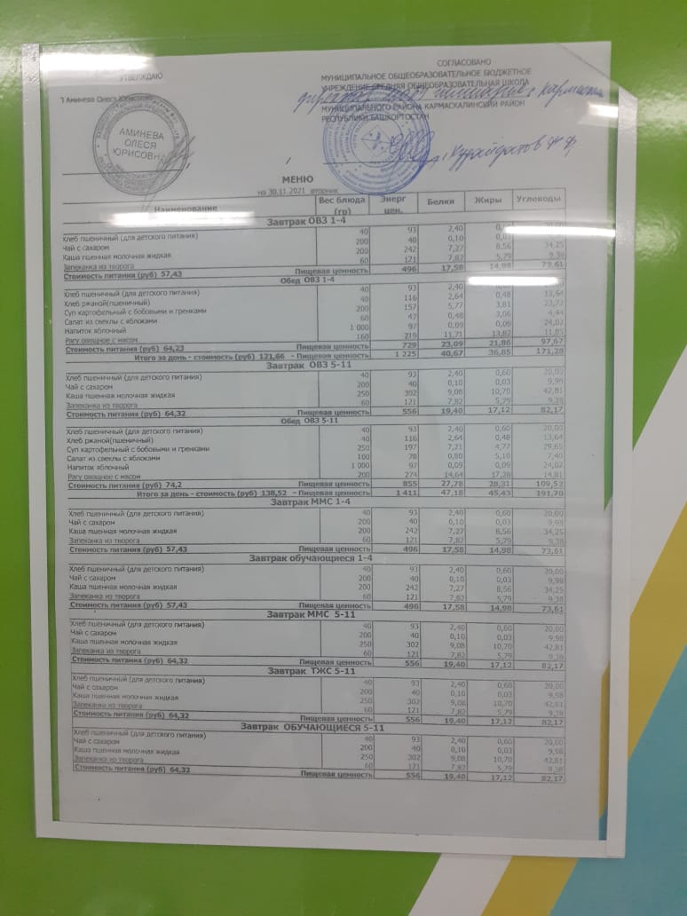Меню филиала МОБУ гимназия с.Кармаскалы СОШ с.Николаевка