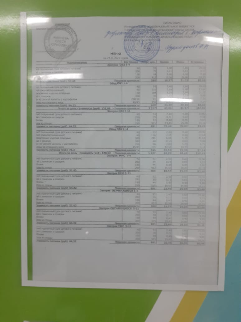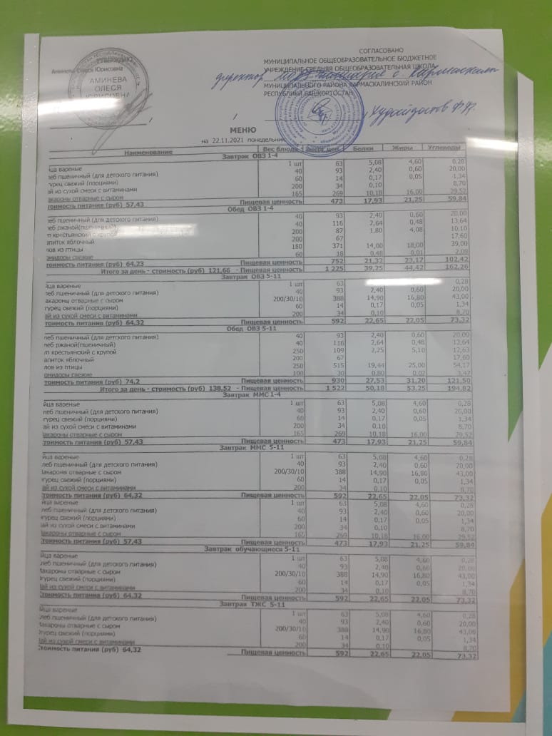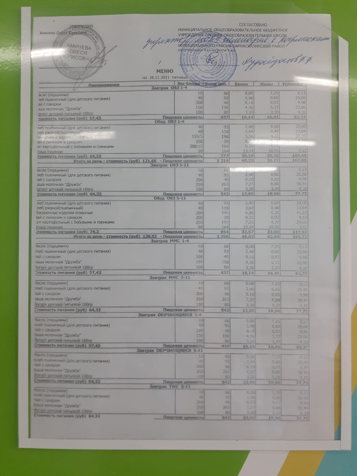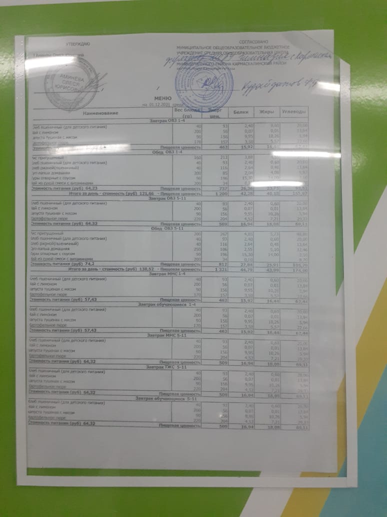 Меню филиала МОБУ гимназия с.Кармаскалы СОШ с.Николаевка