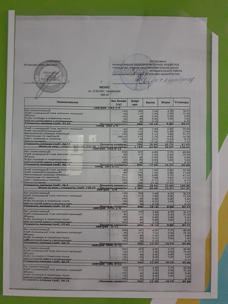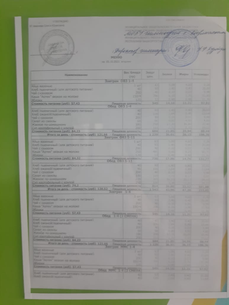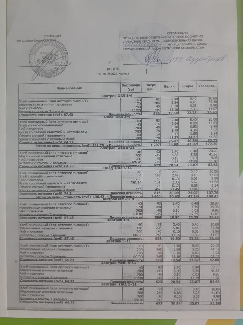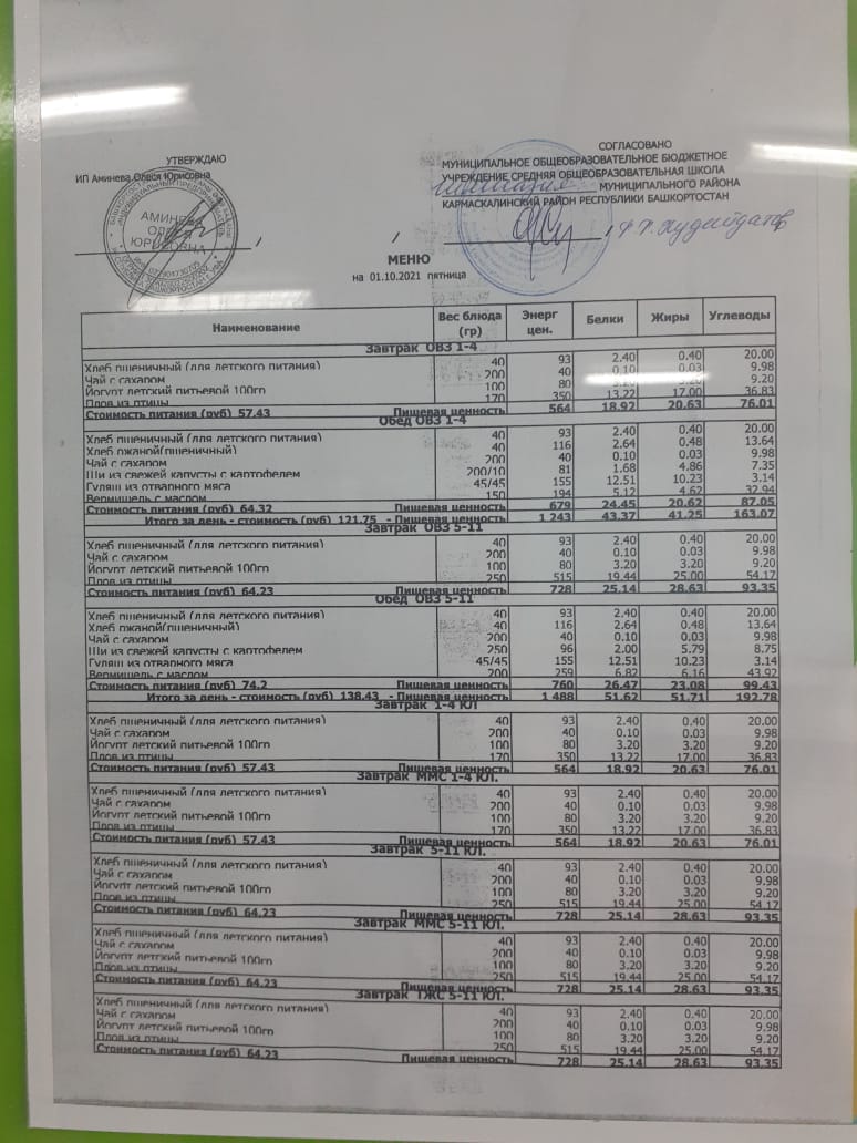 Меню филиала МОБУ гимназия с.Кармаскалы СОШ с.Николаевка