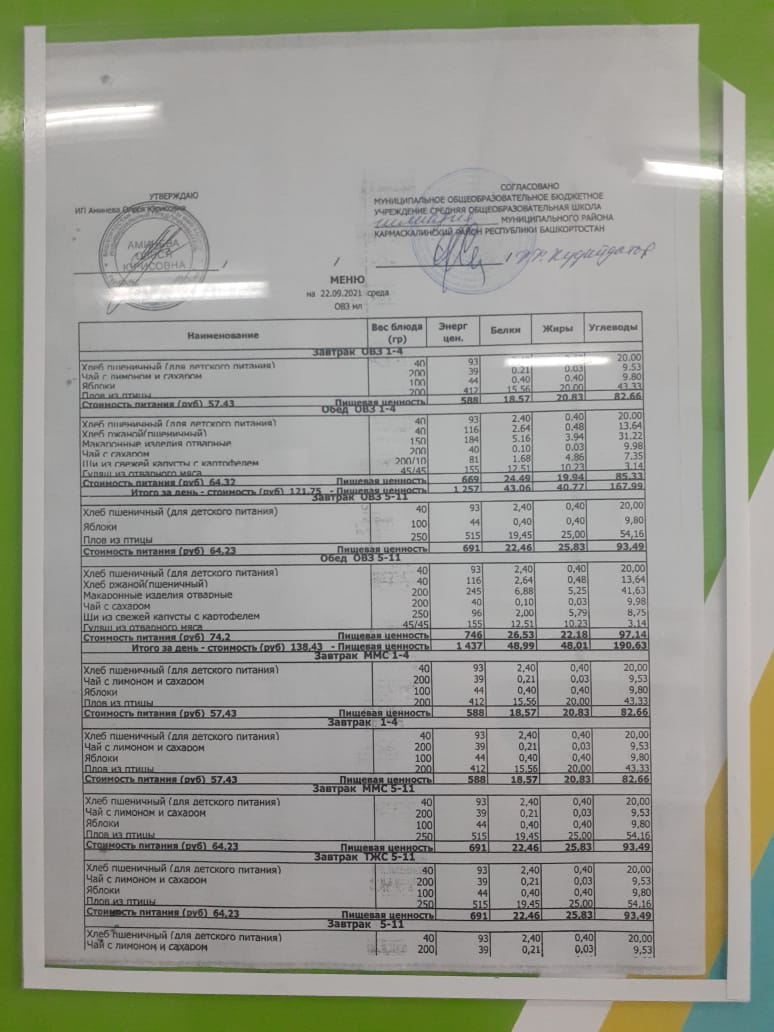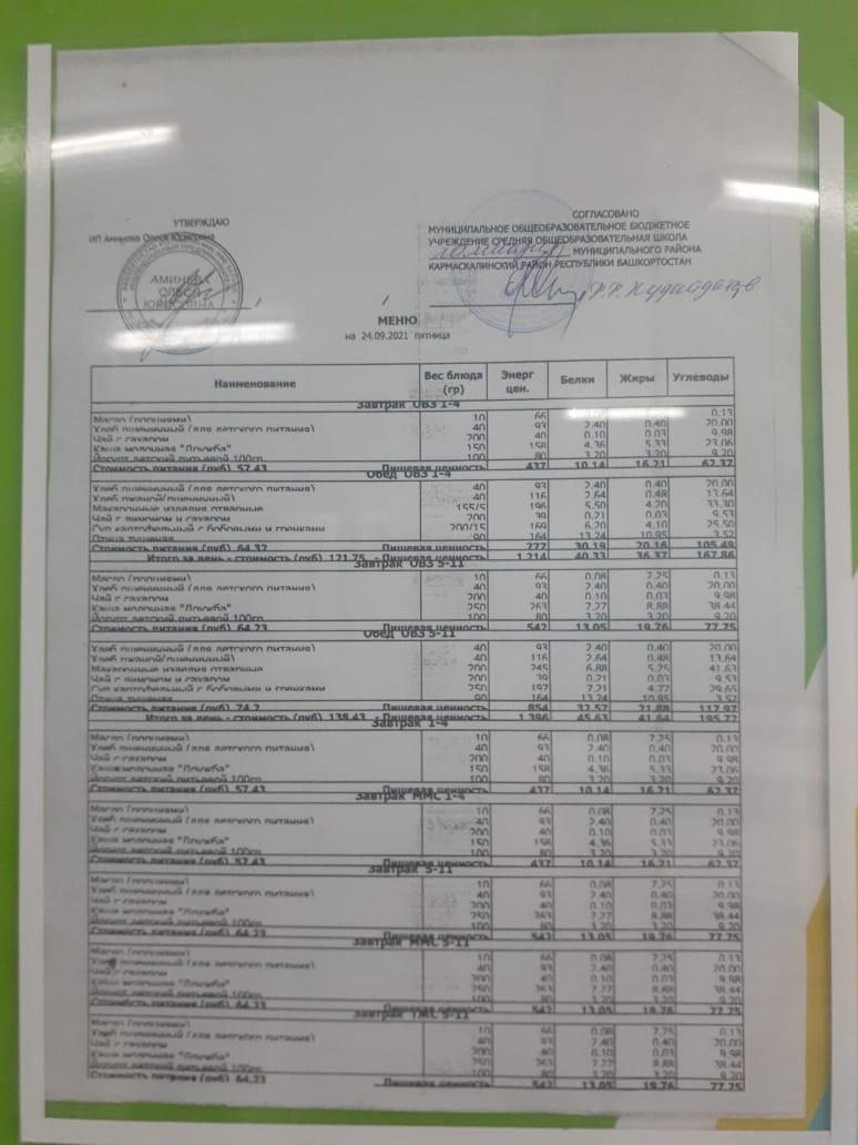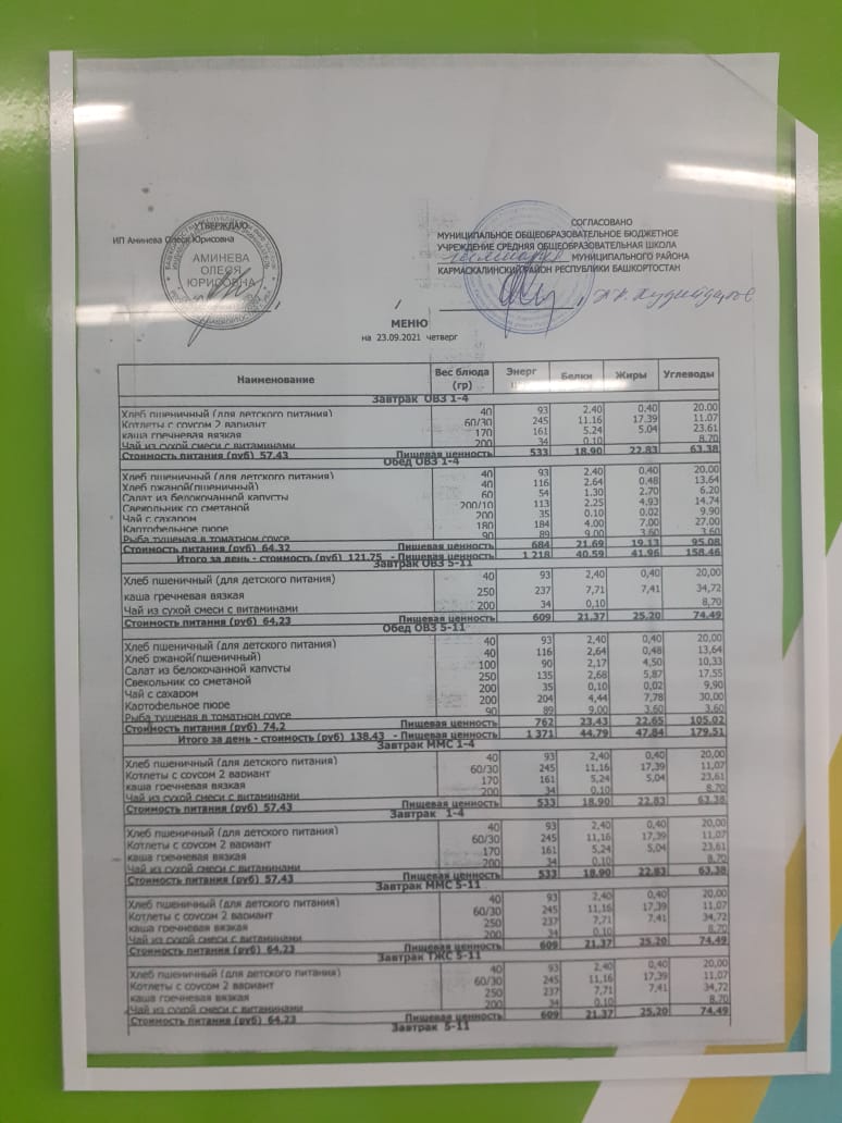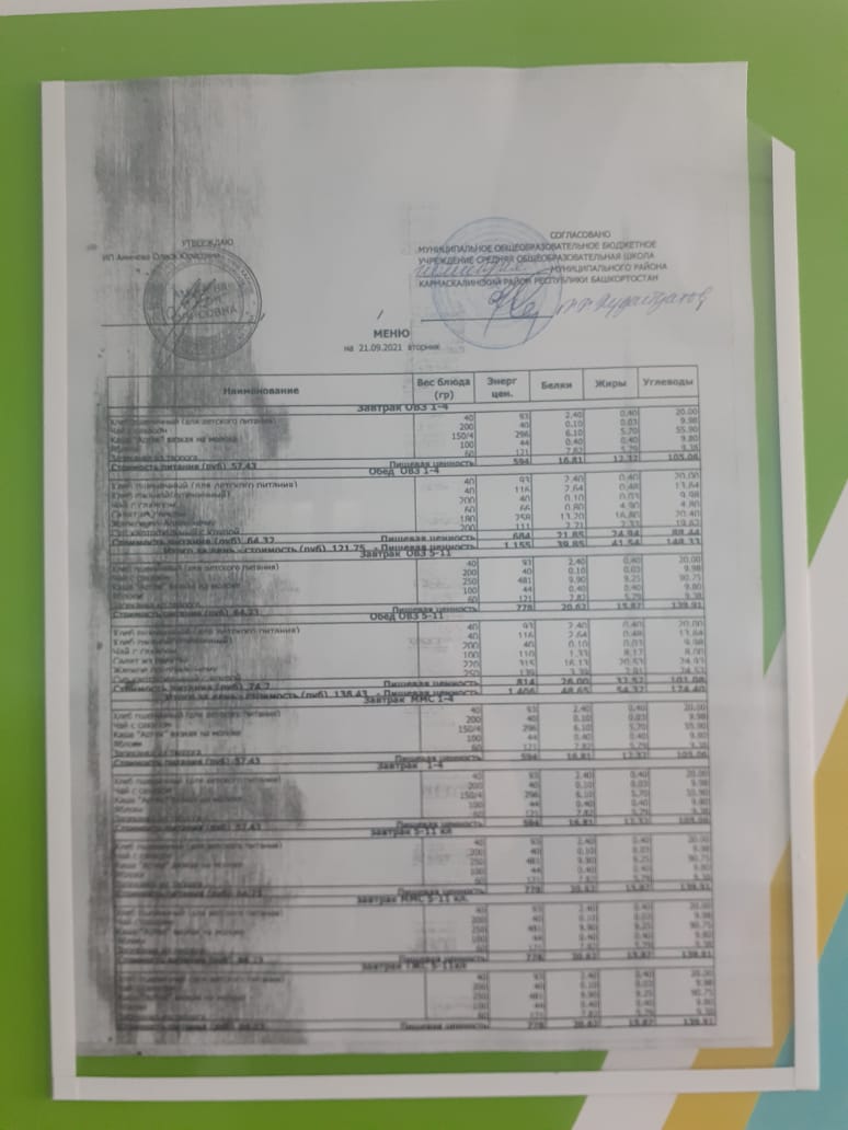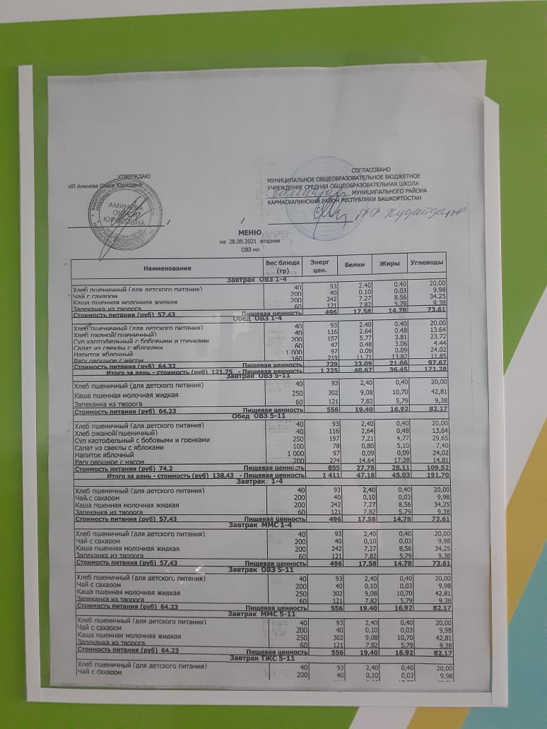 Меню филиала МОБУ гимназия с.Кармаскалы СОШ с.Николаевка