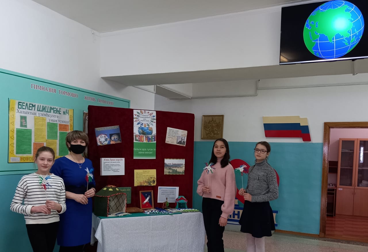 В этот день с утра организовала выставку книг «Родной язык-душа народа»библиотекарь Хаеретдинова Е.Р., познакомила ребят с новинками литературы. В ходе мероприятия дети узнали историю возникновения Дня родного языка, познакомились с разнообразными словарями башкирского, русского языков. К мероприятию была оформлена выставка поделок «Этнодуша народа». Школьникам был показан видеоролик по произведению Р.Гамзатова «Родной язык», который никого не оставил равнодушным.Затем в гимназии среди учащихся и педагогов прошел Международный диктант на языках народов Республики Башкортостан: русском и башкирском. Также учитель технологии Яхина С.Р. провела мастер-класс“Лучик дружбы" по направлению этностиль. В завершении мероприятия ребята сделали вывод, что родной язык – это богатство, к которому необходимо относиться бережно, с уважением.
