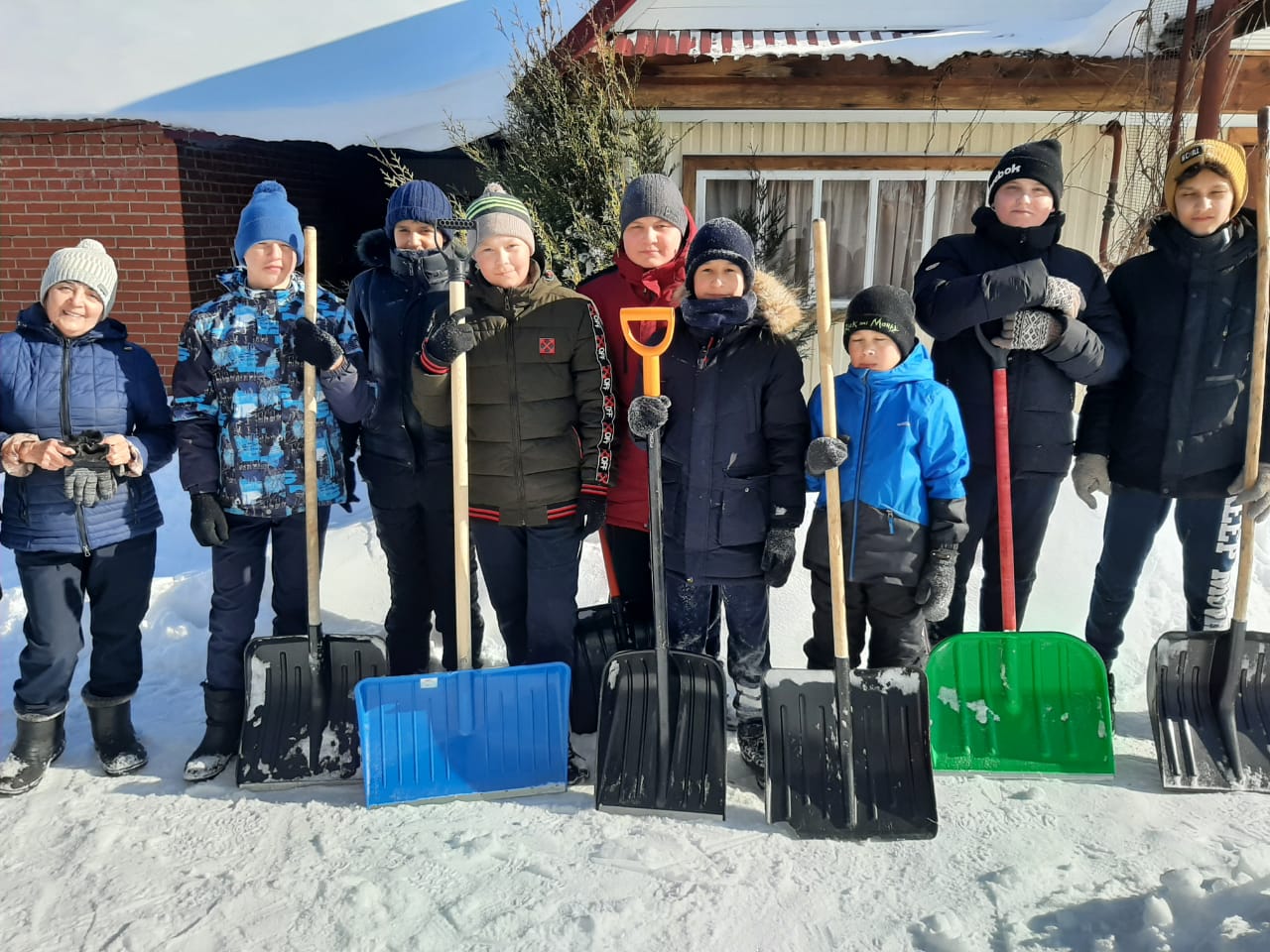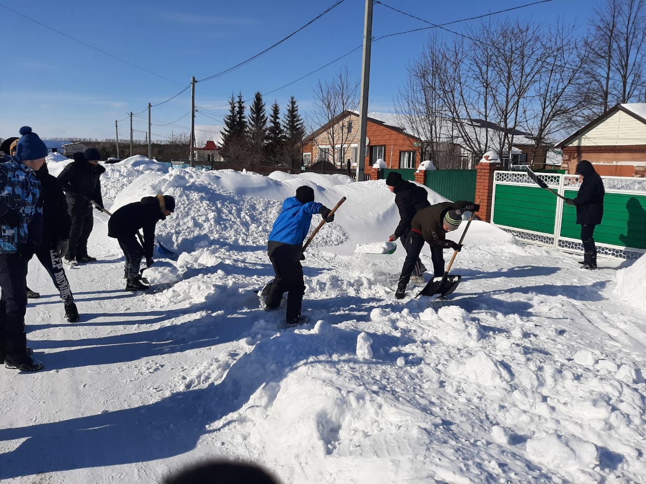Ученики 7 б класса оказали помощь в уборке снега учителю МОБУ гимназия Давлетшиной Флюре Фаритовне, которая находится на заслуженном отдыхе, на пенсии. Вооружившись лопатами, активисты дружно убрали скопившийся во дворе снег и расчистили дорожки.