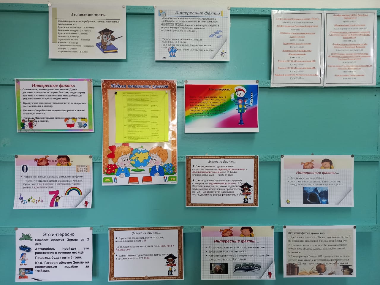 Одной из форм развития познавательной активности обучающихся является проведение предметных недель. Участие в предметной неделе даёт возможность младшему школьнику проявить свои интеллектуальные способности, раскрыть многогранность своих интересов. Важно не оставить без внимания никого, учесть учебные возможности всех школьников. Неделя показывает не только возможности обучающихся, она еще показывает возросшие способности педагогов, их творчество, мастерство и зрелость своего профессионализма. Она позволяет в полной мере раскрыть потенциалы учителя, способствует развитию его профессиональной культуры, профессиональному становлению. «Учиться должно быть всегда интересно. Только тогда учение может быть успешным». Для повышения интереса к школьным предметам и мотивации обучающихся к изучению научных дисциплин с 22 марта по 26 марта  была проведена предметная неделя в начальной школе. В ней принимали участие учителя и учащиеся начальных классов. С огромным удовольствием участвовали ребята в различных мероприятиях в рамках проведения недели. Они мастерили, фантазировали, выдвигали идеи, рисовали, писали сочинения. С большой ответственностью отнеслись учителя к подготовке и проведению внеклассных мероприятий, используя различные формы и методы проведения их: викторины, игры, путешествия, КВНы, конкурсы.